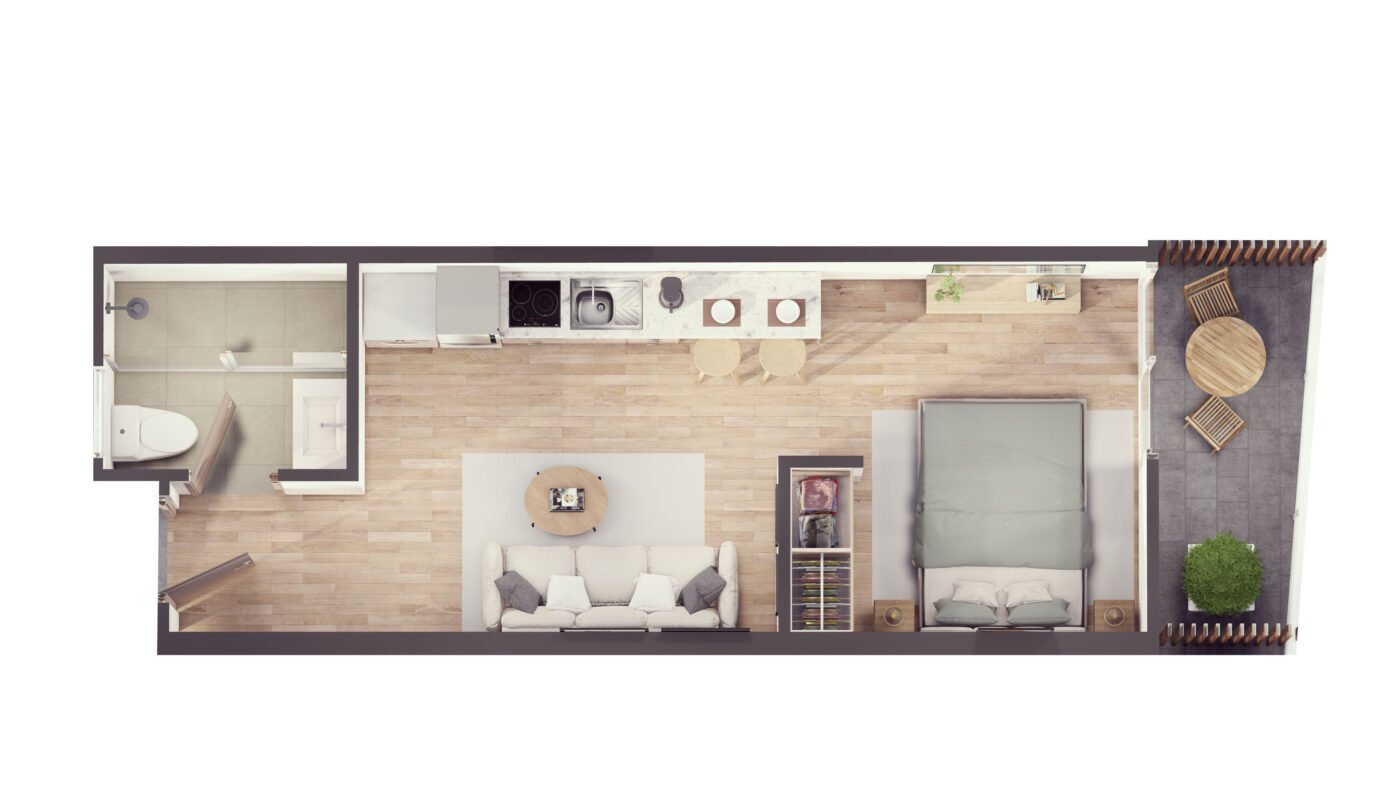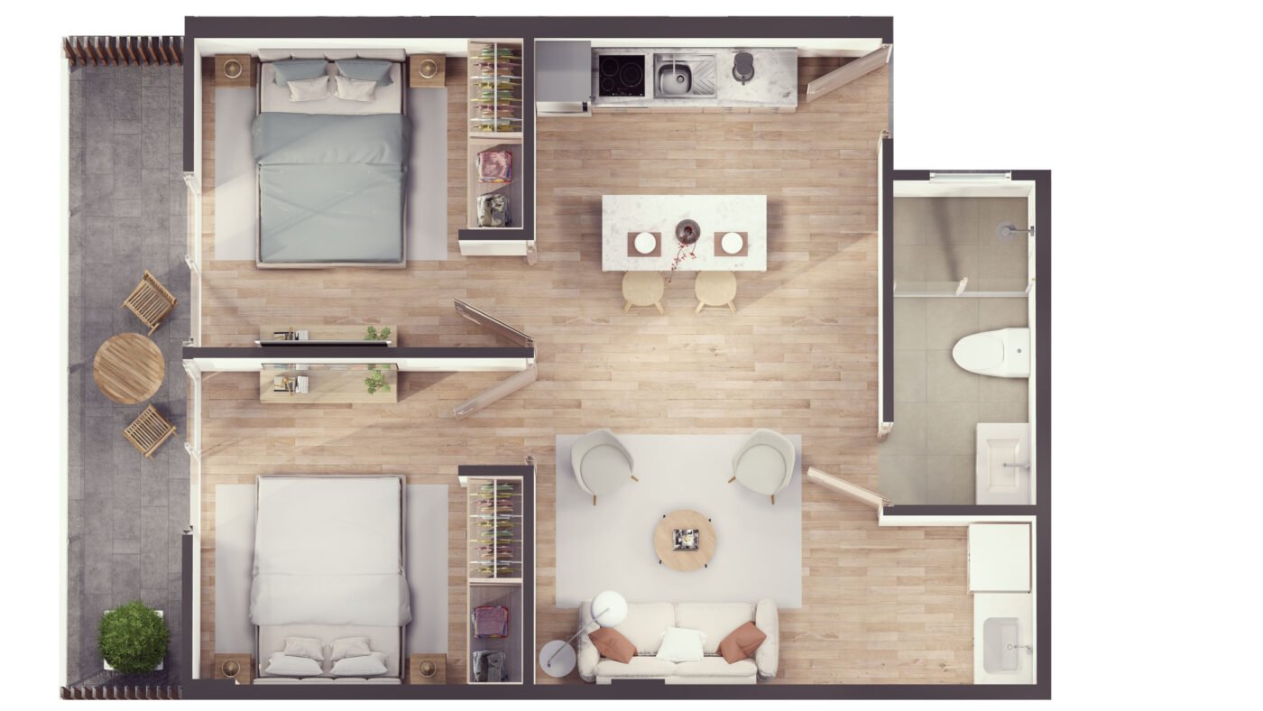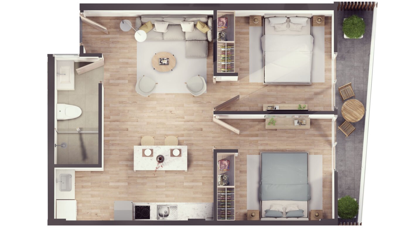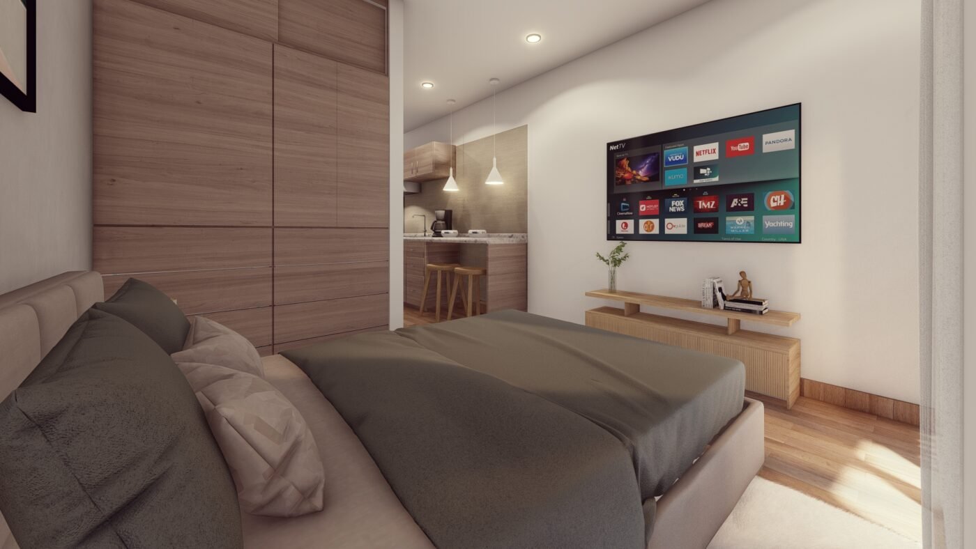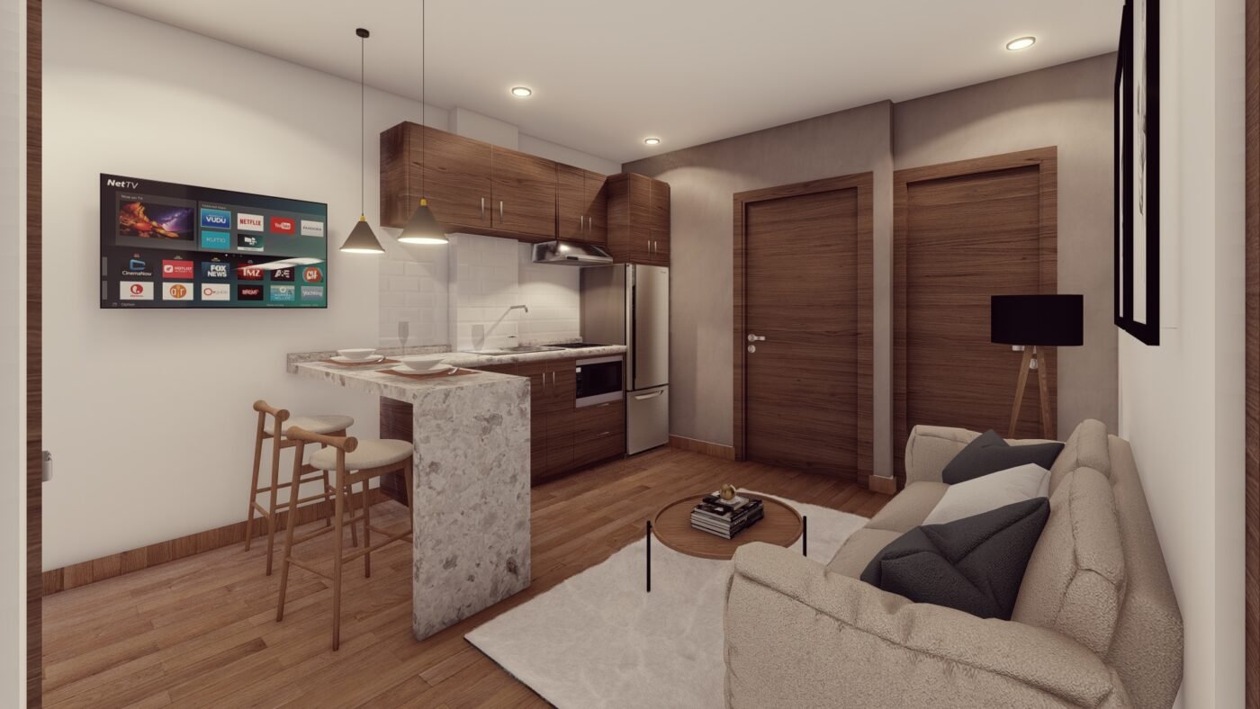 • Apartamentos: Las tipologías varían en tamaño para adaptarse a diferentes necesidades, desde unidades compactas hasta opciones más amplias. Todas tienen un diseño moderno, ambientes bien iluminados y distribución inteligente del espacio.