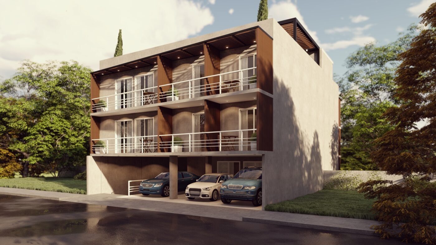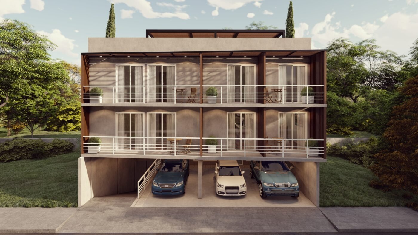 • Área Baja (Parqueos): Parqueos techados, diseñados para brindar comodidad y protección a los vehículos, con acceso directo al edificio.